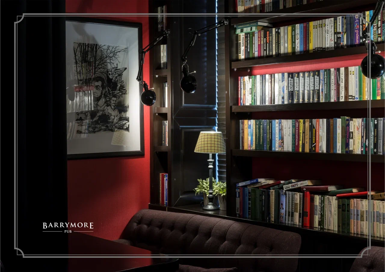 Каждая деталь интерьера уникальна: от обоев, созданных одним из авторов Barrymore Pub, до серии картин, написанных специально к открытию заведения.